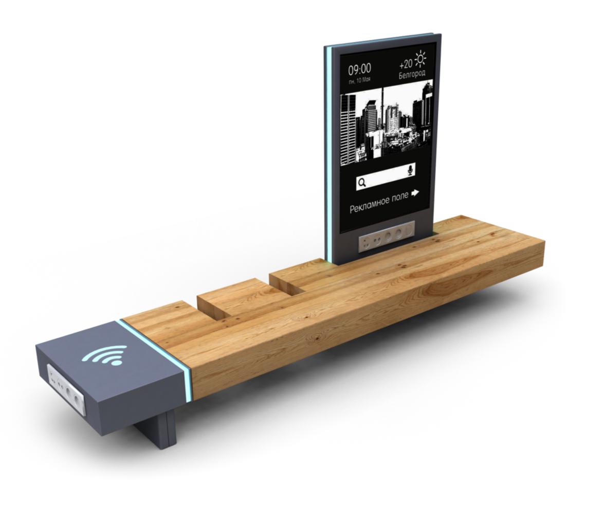 Металл с антикорозийной обработкой и полимерно-порошковой окраской; Дерево хвойных пород, пропитка маслом с антисептиком в 3 слоя; Композитный материал "Алукобонд", акрил; Комплектуется модулем Wi-Fi, USB зарядки - 2 штуки, светодиодная подсветка.